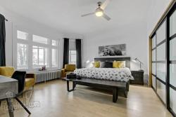 Chambre de 18×15 avec une véranda,dans un grand et luxueux condo de 3200 pi carrés, ayant 7 chambres disponibles, toutes équipées et de grandeur variable. Cette chambre comporte un lit KING, une télévision et un bureau de travail. Votre chambre est privée et il y a une serrure électronique par chambre. avez accès à tous les espaces communs qui sont nettoyés par notre équipe régulièrement:1 salon avec foyer décoratif, 2 salles de bain, 1 grande salle à manger, coin lecture et une terrasse à l’arrière. Stationnement disponible (+75$)